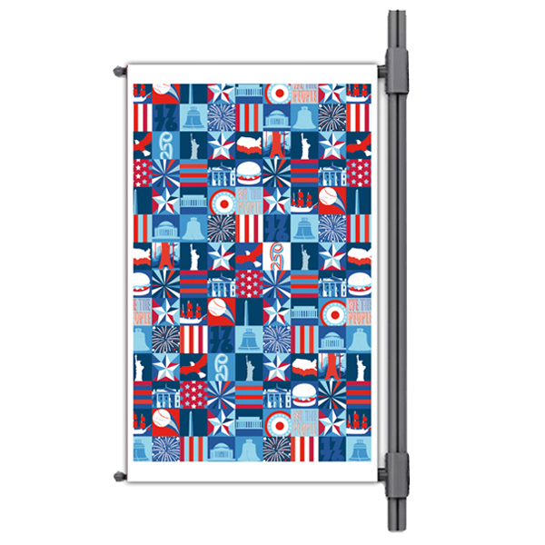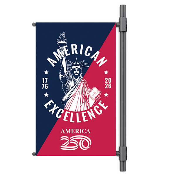 The America250™ Collection includes a curated set of licensed signage products designed specifically for the Semiquincentennial. These products provide a consistent, recognizable way to mark participation in the milestone while allowing flexibility in layout, messaging, and placement.