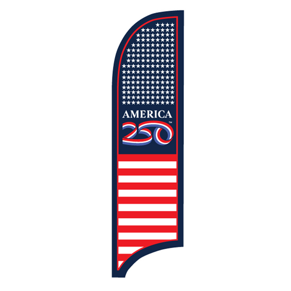 Feather flags add vertical presence and movement, making them effective for festivals, parades, entrances, and high-traffic gathering areas associated with America250™ events.